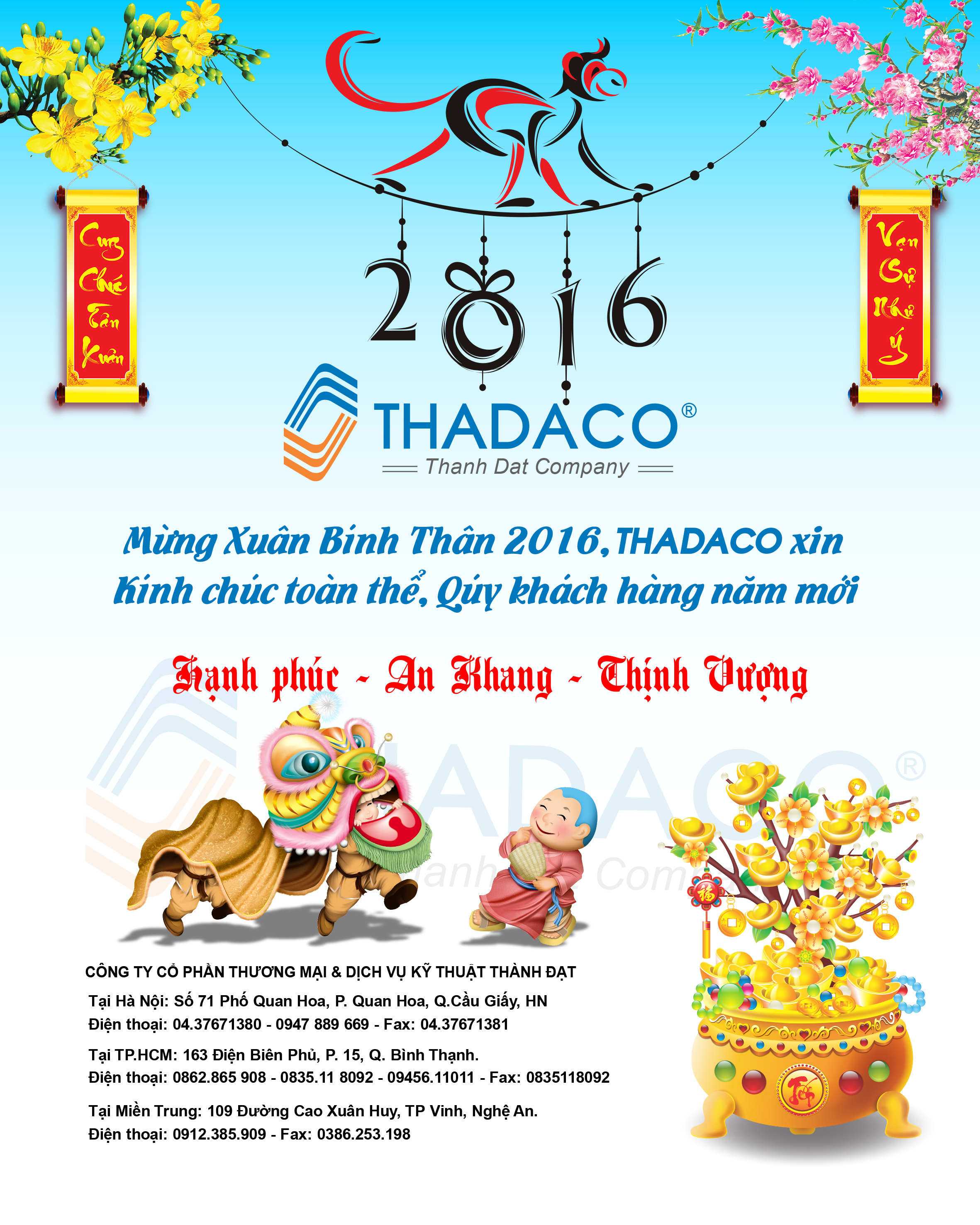THADACO thông báo lịch nghỉ tết Nguyên Đán Bính Thân 2016